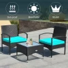 3 PCS Patio Wicker Rattan Furniture Set Coffee Table & 2 Rattan Chair W/Cushion