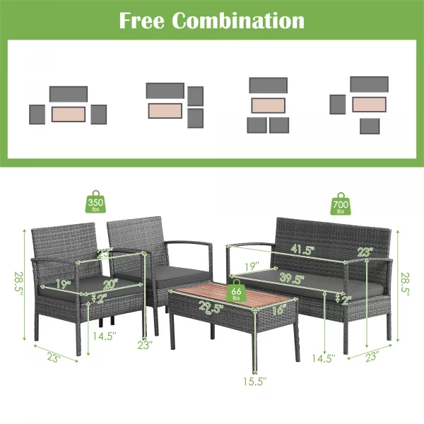 Transform your outdoor space with this beautifully crafted 4-piece patio furniture set, designed for both style and comfort. Whether you’re hosting guests, enjoying a quiet morning coffee, or unwinding after a long day, this set offers exceptional relaxation and durability for any outdoor setting.