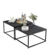Elevate your living space with this stunning set of two nesting coffee tables, designed for both functionality and aesthetics. With a sintered stone top and sleek black metal legs, this modern minimalist set seamlessly blends into any interior while providing a durable and practical surface for everyday use.
