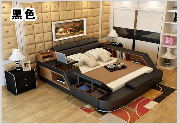 Soft Bed Surface: The bed’s comfortable feel, combined with high-quality genuine leather, offers a luxurious experience for restful sleep