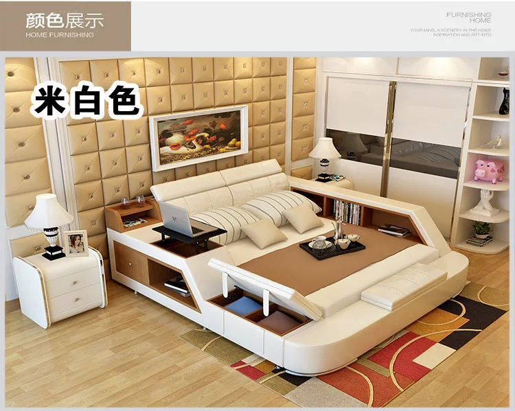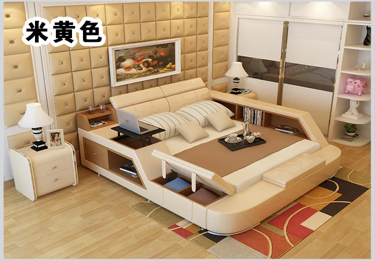 real Genuine leather bed frame Modern Soft Beds with storage Home Bedroom Furniture cama muebles de dormitorio / camas quarto
