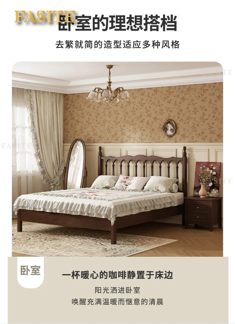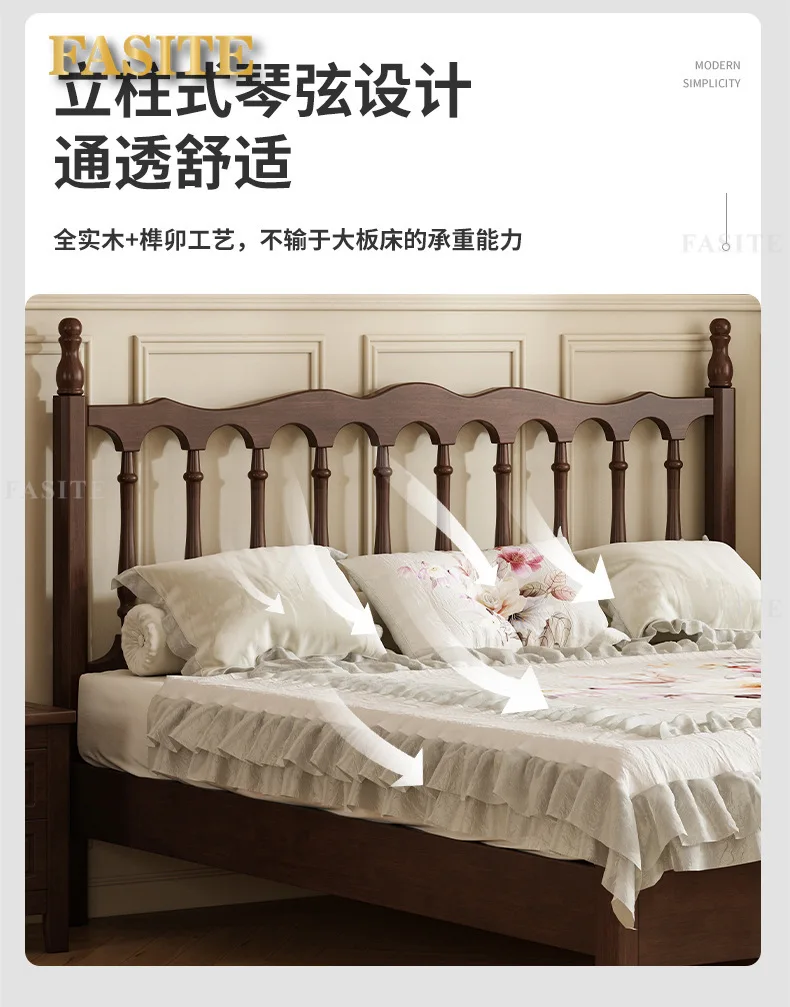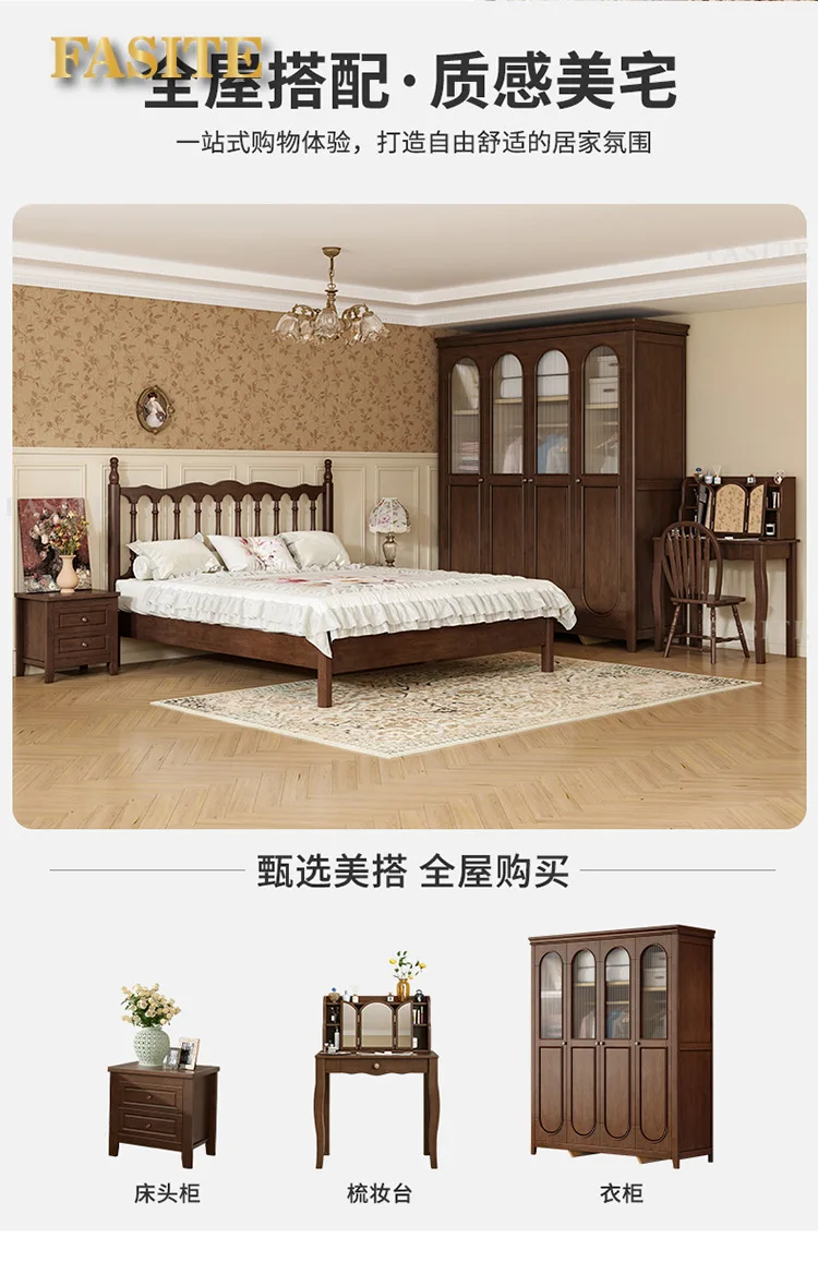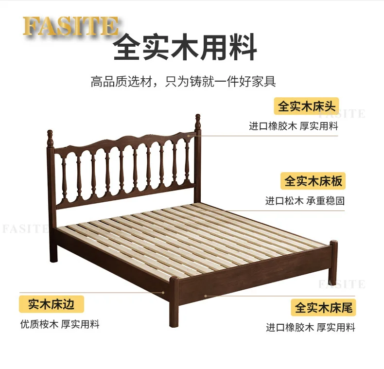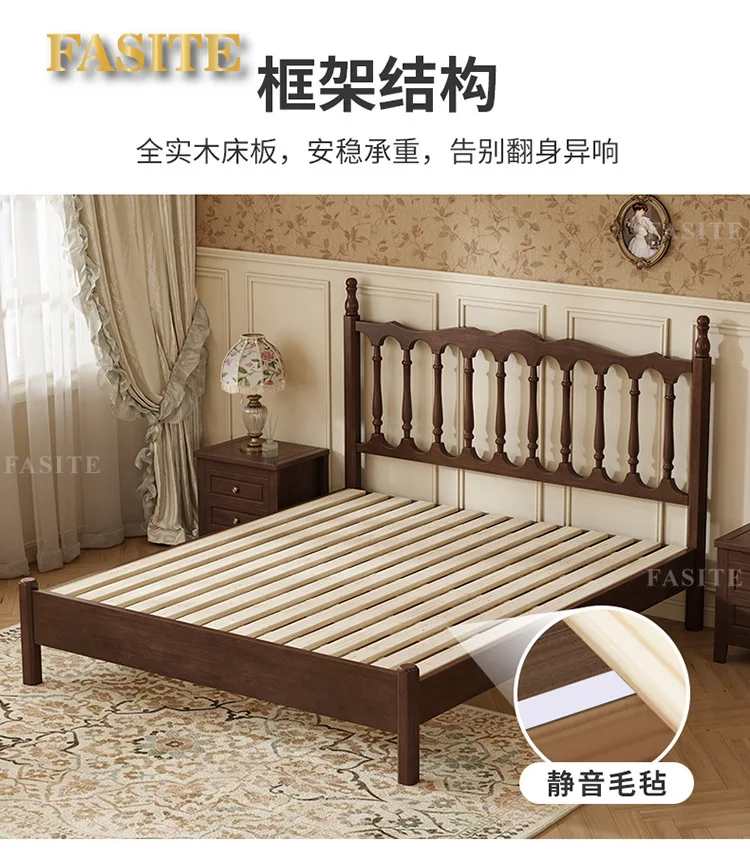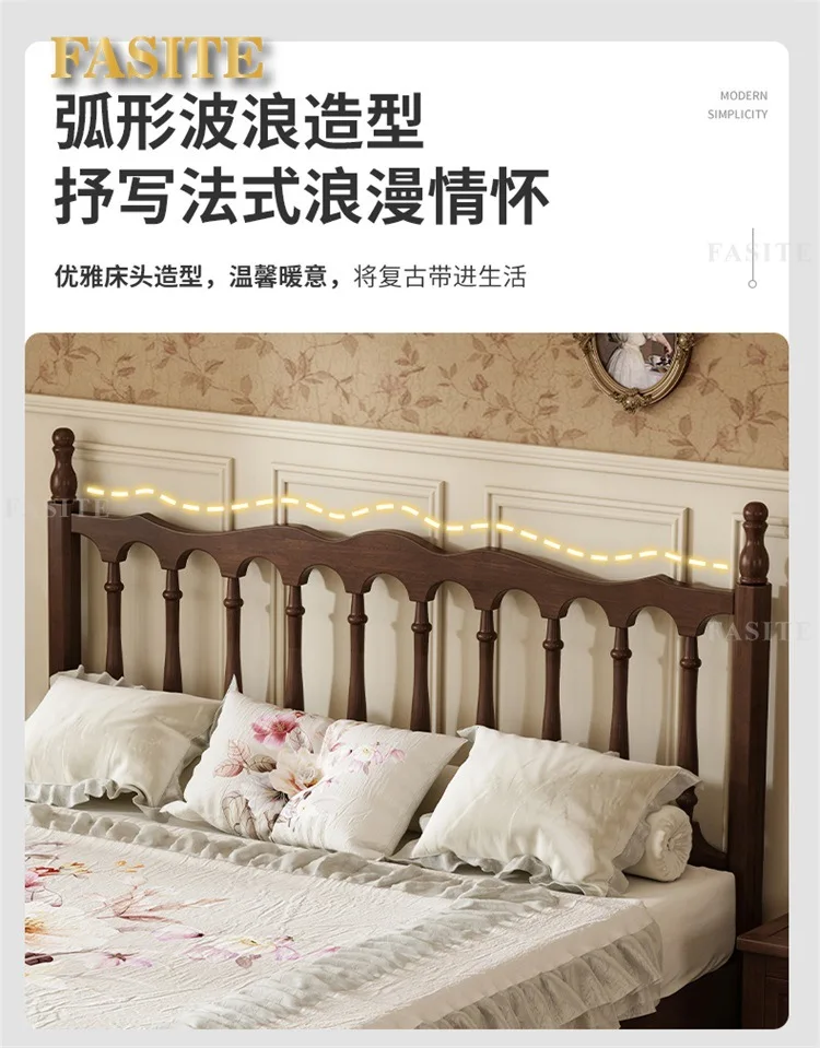 Rural American bed all solid wood 1.8M double modern simple retro French bed B & B style