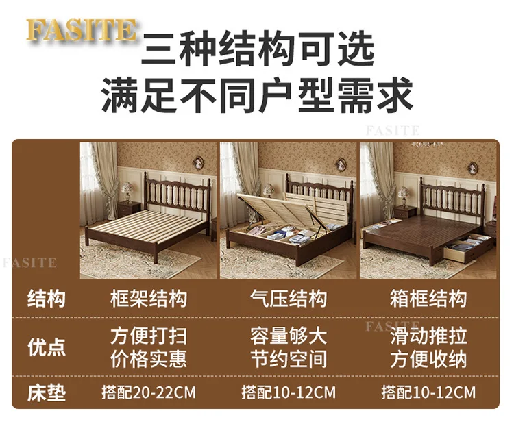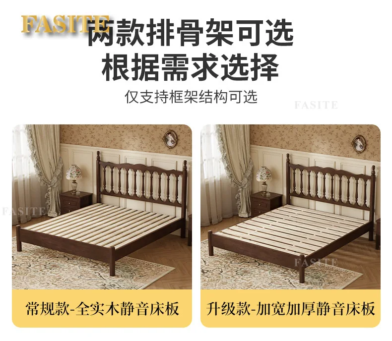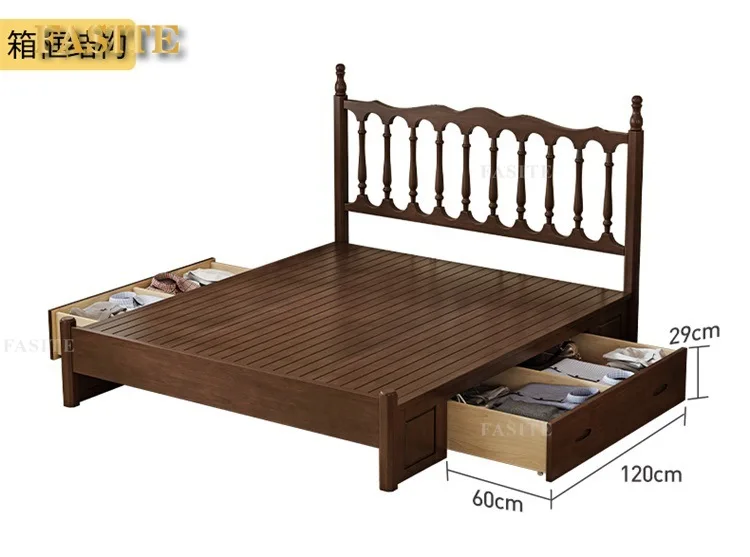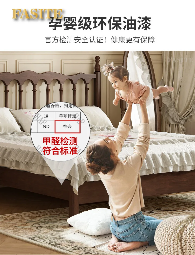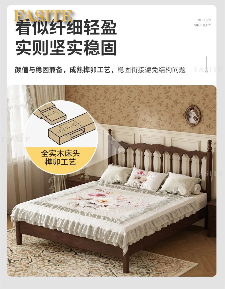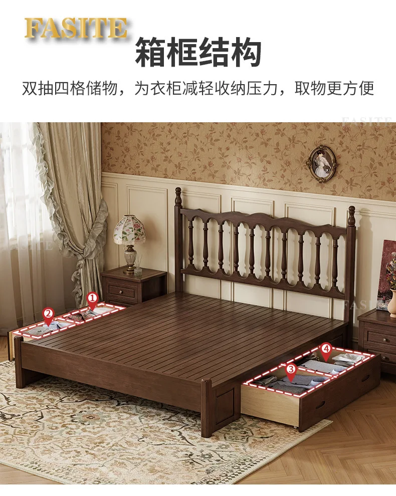 Rural American bed all solid wood 1.8M double modern simple retro French bed B & B style