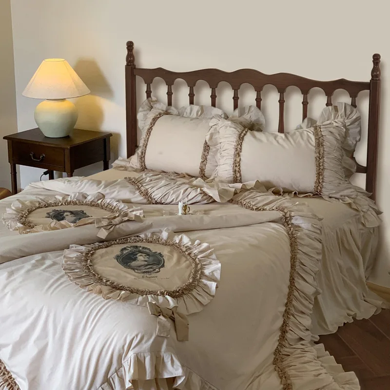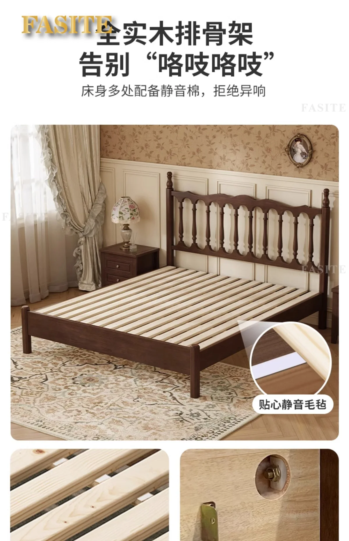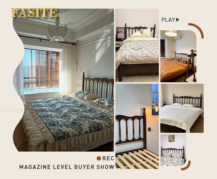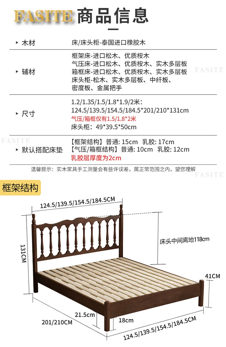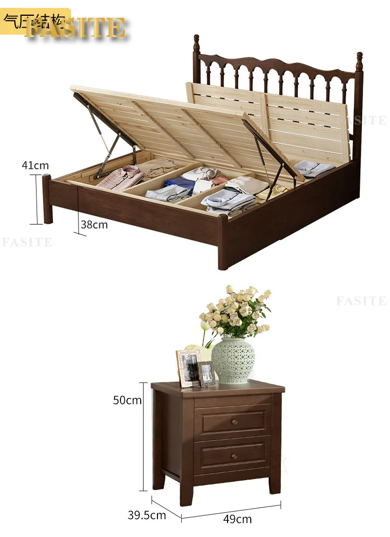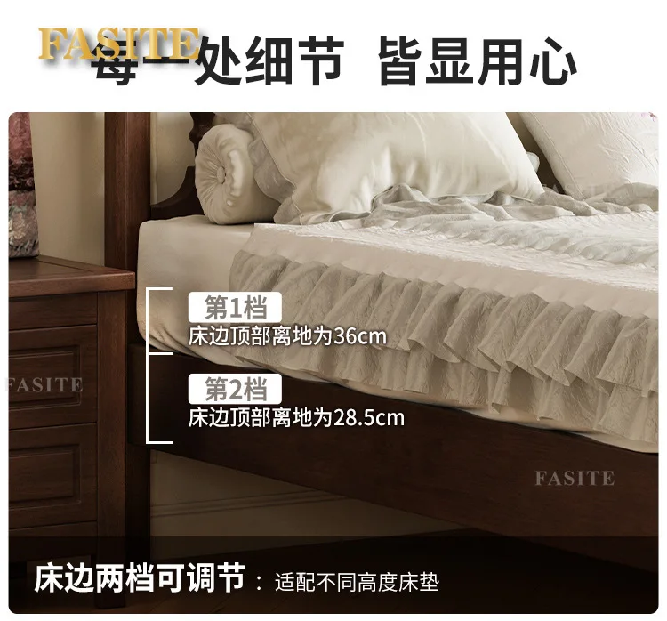 Rural American bed all solid wood 1.8M double modern simple retro French bed B & B style