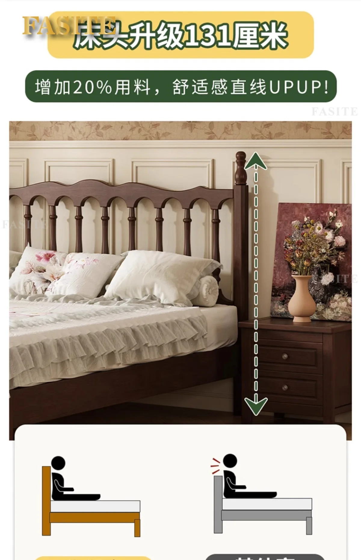 Be the first to review “Rural American bed all solid wood 1.8M double modern simple retro French bed B & B style”