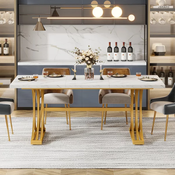Modern Faux Marble Dining Table – Elegant, Spacious & Built to Last